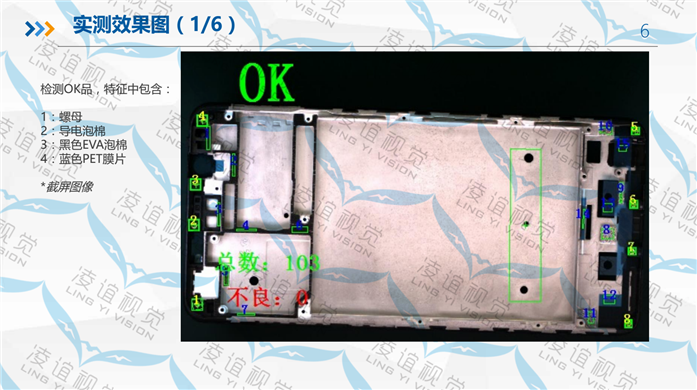 手機(jī)殼輔料檢測(cè)設(shè)備采用先進(jìn)的視覺影像識(shí)別算法和架構(gòu),設(shè)備放置在流水線上實(shí)時(shí)在線檢測(cè),精度高,識(shí)別效率高,帶聲光報(bào)警及自動(dòng)剔除??梢宰R(shí)別手機(jī)殼件上的輔料漏裝,可識(shí)別黑色殼體上黑色泡棉的有無、零部件漏裝,倒裝,錯(cuò)裝,堵孔等加工缺陷。能有效提高出貨品質(zhì)及減少客訴。應(yīng)用于手機(jī)殼體加工、結(jié)構(gòu)組件、CNC加工、手機(jī)殼注塑、手機(jī)整機(jī)加工、電子產(chǎn)品加工行業(yè)等。