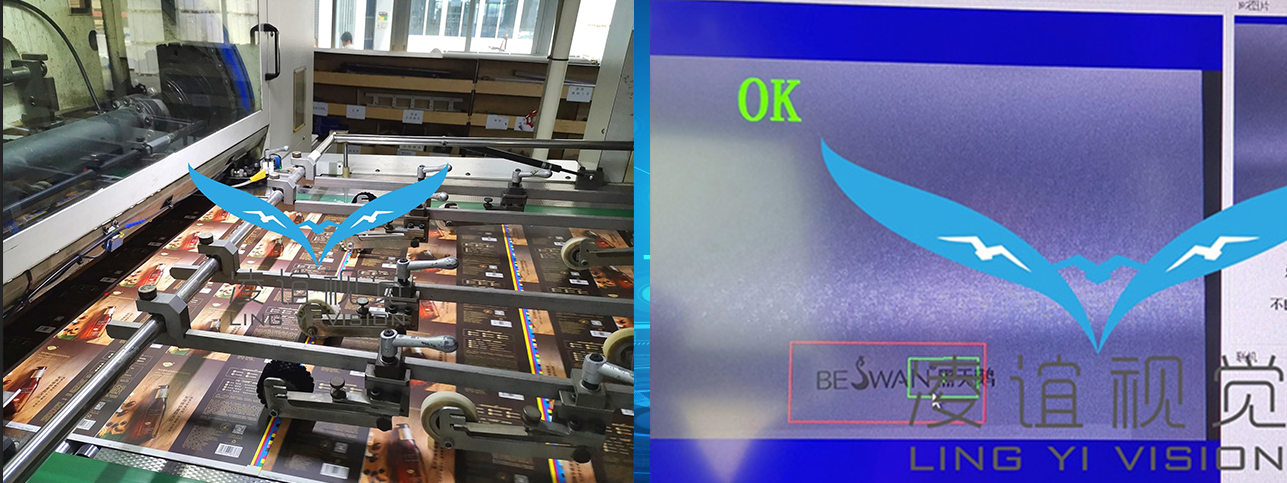 啤機/模切機在線檢測系統(tǒng)是加裝在模切機上,通過對每張待模切的卡紙的局部成像,依據圖像中的條碼、二維碼、圖形文字、燙金燙銀等特征,來判斷該待模切的卡紙是否存在混料、倒頁、白頁、漏印、漏燙金、漏燙銀,局部印刷不良等不良現(xiàn)象。當發(fā)現(xiàn)不良時及時輸出停機報警信號,供人工排除問題物料并復位重新運行,以確保模切后的產品的質量,該系統(tǒng)的高速穩(wěn)定運行保障了生產的良率,杜絕了不良產品的產生,避免了客訴現(xiàn)象的產生,大大提高了印刷廠的生產效率。